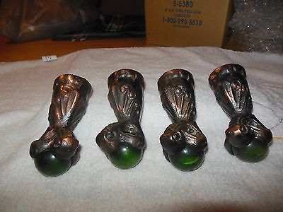 set #2 OF VICTORIAN BALL AND CLAW CASTORS ( GREEN GLASS BALLS)