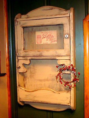 Title (ebay affiliate link): antique wood wall spice cabinet cupboard box shelf rack butterscotch tan hooks