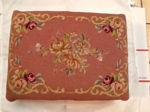 ANTIQUE VINTAGE FLORAL Pink NEEDLE POINT SHABBY FORAL WOOD FOOT STOOL
