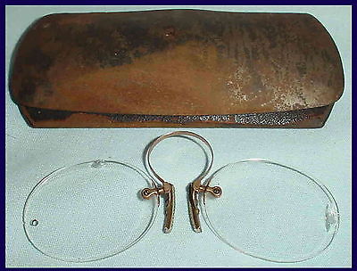OLD 10K GOLD PINCE NEZ EYEGLASSES RIMLESS METAL CASE/SCRAP or REFURBISH