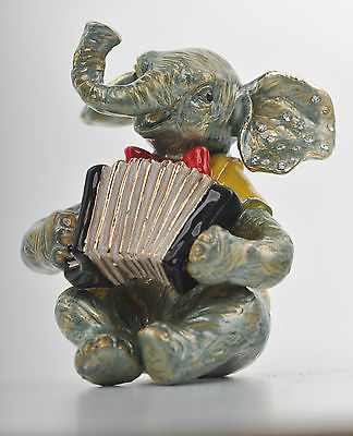 Elephant playing Accordion Trinket Box by Keren Kopal Faberge Austrian Crystal