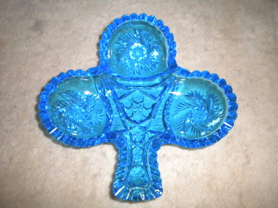 BLUE DEPRESSION GLASS 3 footed CLOVER TRINKET DISH