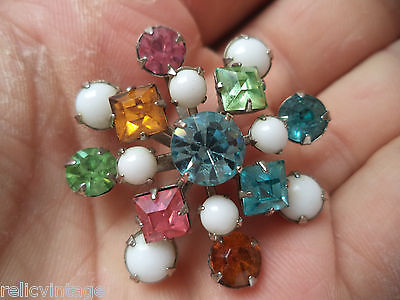 STUNNING VINTAGE ESTATE HIGH END RHINESTONE MILK GLASS FLOWER BROOCH!!! 692N