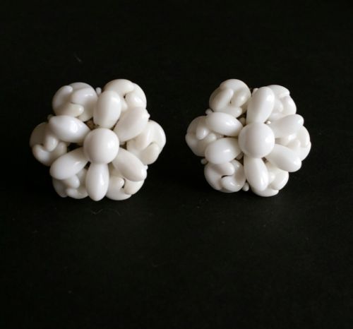 Title (ebay affiliate link): Vintage Milk Glass Screw Back Earring Cluster Flower Tier White Cute C730