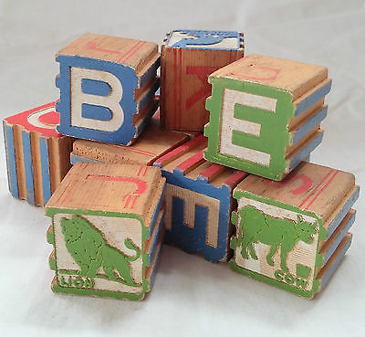 Lot of Thirteen Vintage 1" Wooden Alphabet Blocks