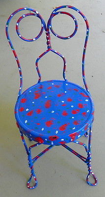 Title (ebay affiliate link): Vintage Twisted Wrought Iron Child's Ice Cream Parlor Chair - UF Orange & Blue