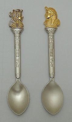 Lot of 2 Egyptian Pharaoh Decorative Spoons , King Tut and Cleopatra ,Gold Color