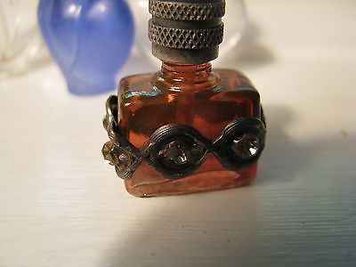 ANTIQUE CZECH PERFUME BOTTLE AMBER GLASS GORGEUS FILAGREE TOP
