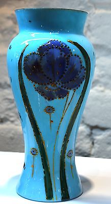 Antique Victorian Turquoise Hand Painted Bristol Art Glass Vase