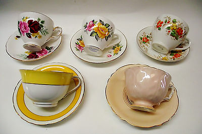 LOT OF 5 TEA CUPS & SAUCERS FINE BONE CHINA ENGLAND 3 MATCHED 2 MISMATCHED