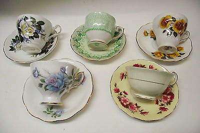 Title (ebay affiliate link): LOT OF 5 TEA CUPS & SAUCERS FINE BONE CHINA ENGLAND 2 MATCHED 3 MISMATCHED