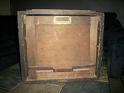 VINTAGE WOODEN FILE CABINET METAL BRASS PRIMITIVE INDUSTRIAL