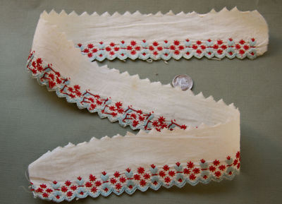 ANTIQUE H/MADE EMBROIDERED TRIM HEARTS STARS DOLL LACE