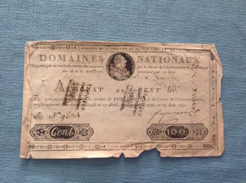 1791 French Currency Note Domaines Nationaux 10 Cent
