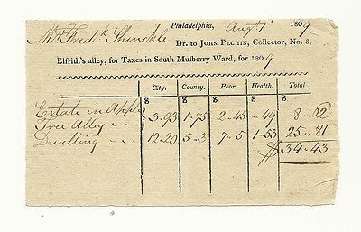 Orig. 19thc American "TAX BILL" Philadelphia, PA 1809