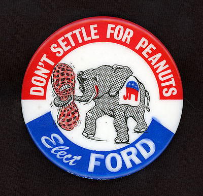 Title (ebay affiliate link): GERALD FORD Political Button "DON'T SETTLE FOR PEANUTS"
