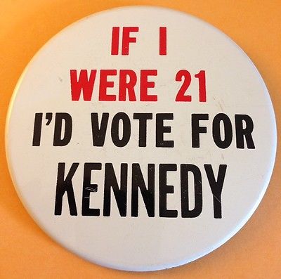 Title (ebay affiliate link): If I Were 21 I'd Vote for (John) Kennedy Campaign Pin Pinback Button