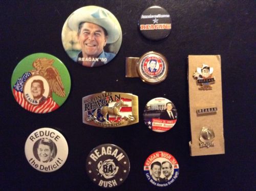 Title (ebay affiliate link): Large Lot - 12 Ronald Reagan Political Buttons, Pins, Belt Buckle, Money Clip