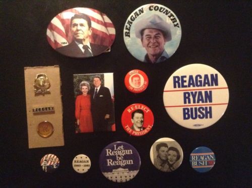 Title (ebay affiliate link): Large Lot - 14 Ronald Reagan Political Buttons, Pins, Belt Buckle, Fridge Magnet