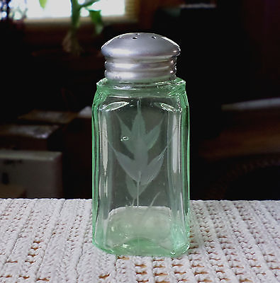 Vintage Green Depression Glass Salt Shaker With Etched Flowers Design