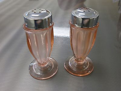 Pink depression glass pedestal salt and pepper set-no maker's mark/new lids