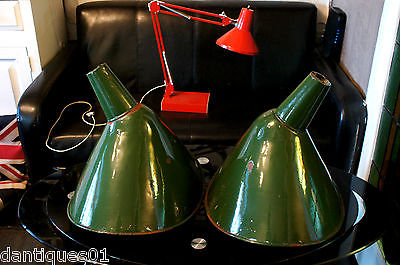 PAIR OF LARGE GREEN HEAVY METAL INDUSTRIAL LIGHT SHADES - FACTORY - UNUSUAL RARE