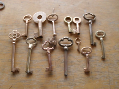 13 ANTIQUE VINTAGE BRASS FURNITURE, CHEST, KEYS