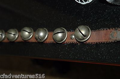string of 1800s vintage horse/sleigh bells on old leather belt well made,no res