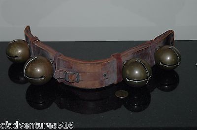Title (ebay affiliate link): string of 1800s vintage brass horse/sleigh bells on old leather belt well made