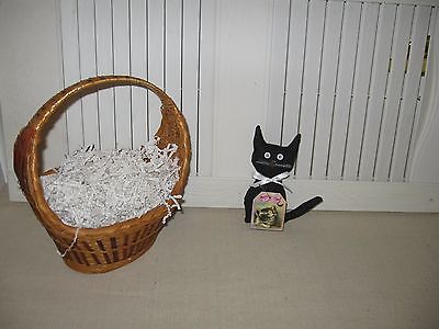 Handmade Primitive Fabric Bowl Filler Kitten w/Ribbon Bow, Rusty Bell, and tag