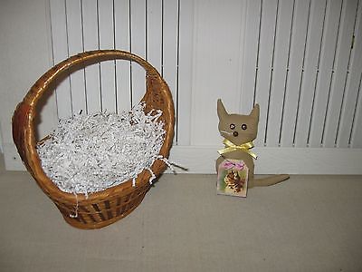 Handmade Primitive Fabric Bowl Filler Kitten w/Ribbon Bow, Rusty Bell, and tag