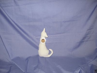 Handmade Primitive Fabric Bowl Filler White Cat with,Tag Rusty Bell