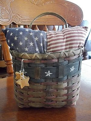 Title (ebay affiliate link): American Wicker Basket Red White and Blue w/ Removable Patchwork Flag Pillow
