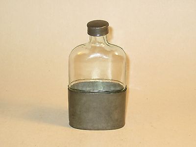 NICE 19TH CENTURY PEWTER AND GLASS WHISKEY FLASK