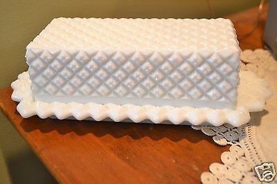 VINTAGE WESTMORELAND BUTTER DISH MILK GLASS Diamond PATTERN ~ Nice!!