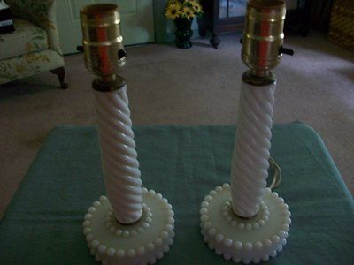 PAIR OF VINTAGE WHITE MILK GLASS TABLE LAMPS