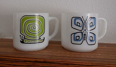 Federal White Milk Glass Mug with Butterfly and Snail Lot Set Vintage