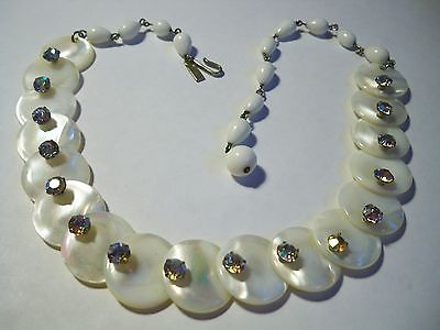 Title (ebay affiliate link): Gorgeous Frances Hirsch MOP Aurora Borealis AB Rhinestone Milk Glass Necklace