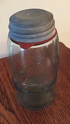 Title (ebay affiliate link): Antique Atlas Mason Quart Jar Aqua with Zinc Lid, H over A on milk glass insert