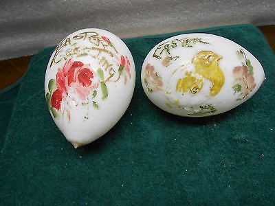 Vintage 2 hand blown and hand painted milk glass Easter eggs
