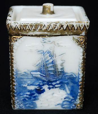 WESTMORELAND Milk Glass Victorian Mustard Jar with Chinese Scenes & Hand Painted