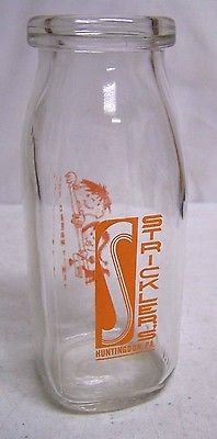 VINTAGE HUNTINGDON PA STRICKLER'S FARM DAIRY MILK GLASS BOTTLE 1/2 PINT 17 60