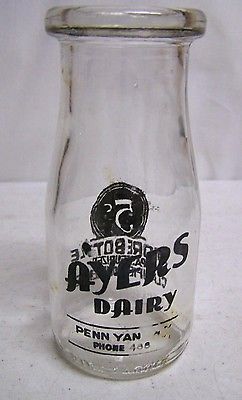 VINTAGE PENN YAN NY AYERS FARM DAIRY MILK GLASS BOTTLE 1/2 PINT