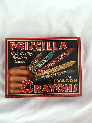Title (ebay affiliate link): 1937 Standard Toykraft Priscilla #37 Hexagon Crayon Tin box w used crayons