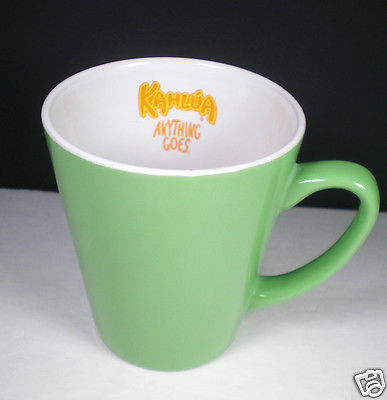 Title (ebay affiliate link): Kahlua Collectible Mug/Cup Vintage 1999 Green--"Anything Goes" Words In Orange