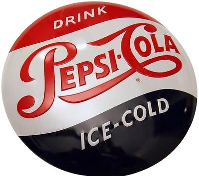 Pepsi Cola LARGE Retro 3D Button Sign Tin Sign Soda Bar Decor 14" FREE SHIP NR!