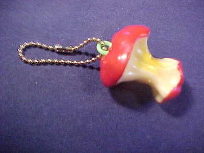 VINTAGE RED APPLE CORE KEYCHAIN 1-1/2" LONG 1970'S BEAD CHAIN