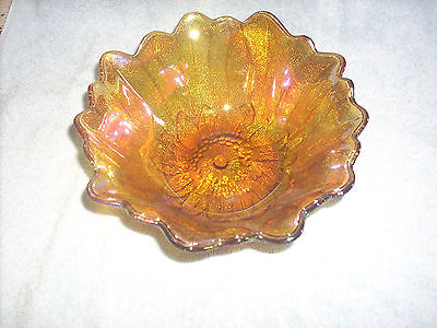 VINTAGE IRIDESCENT GOLD AMBER CARNIVAL GLASS BOWL
