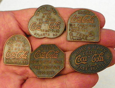 Title (ebay affiliate link): "DRINK COCA-COLA" (SET OF 5) DIFFERENT FREE DRINK BRASS TOKENS