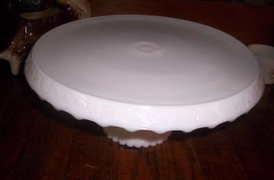 VINTAGE INDIANA MILK GLASS GRAPES PEDESTAL CAKE STAND